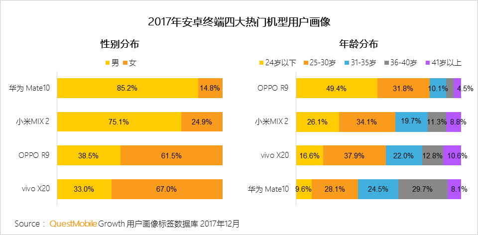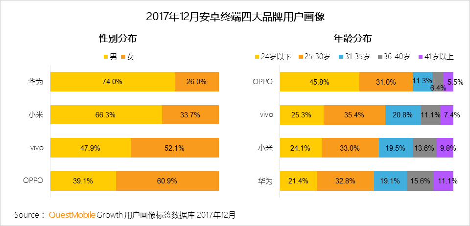 男性用户热衷华为/小米,女性用户青睐OPPO/vivo