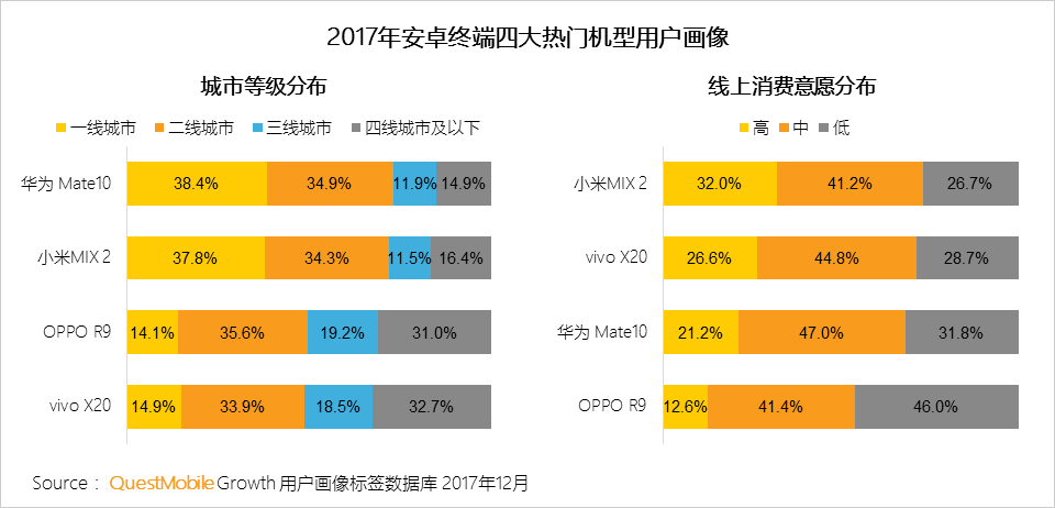 华为/小米一线城市占优,OPPO/vivo用户下沉显著